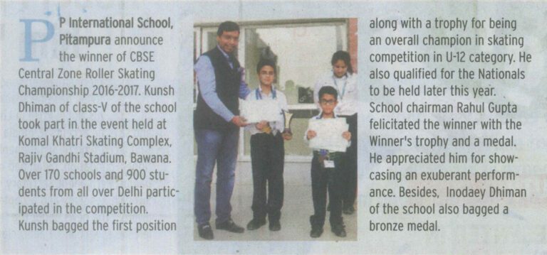 Times of India (2 November, 2016) Kunsh Dhiman, PP International School qualifies for Nationals