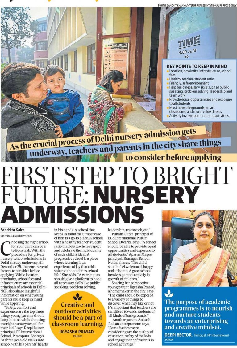 Hindustan Times (3rd December, 2022) featuring the coverage of P.P International School’s – First step to bright future:Nursery admissions.