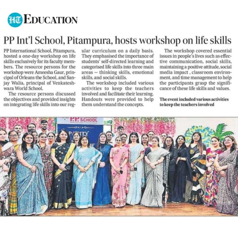 Hindustan Times featuring the coverage of PP International School, Pitampura, hosts workshop on life skills